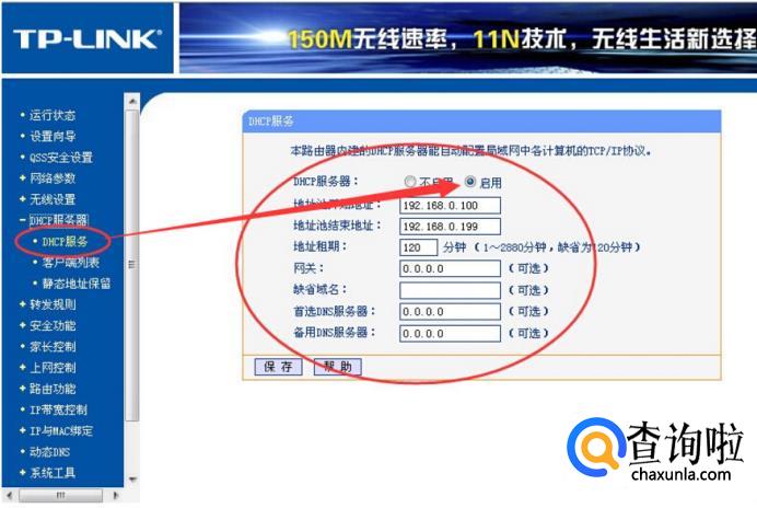启用路由器的DHCP服务。