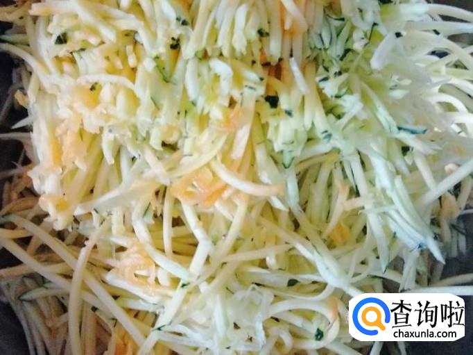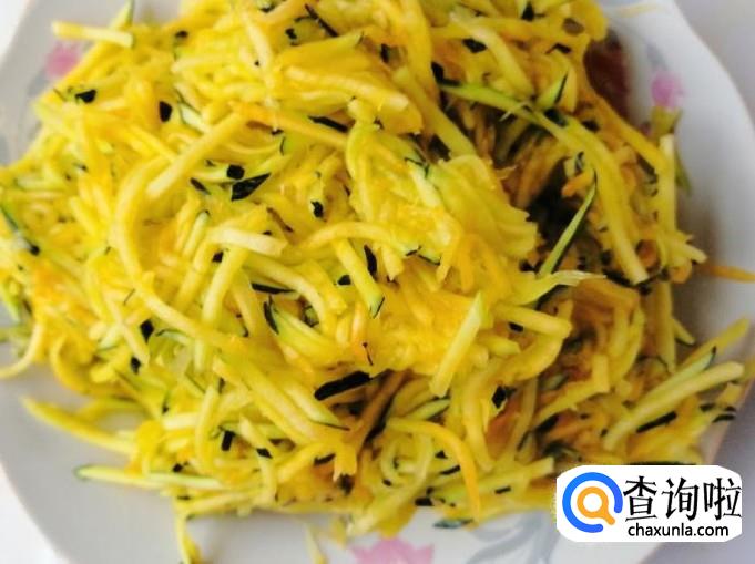 取适量新鲜的南瓜,用清水把南瓜洗净,然后用刀切掉南瓜两头,把南瓜用擦丝器擦成细丝待用。