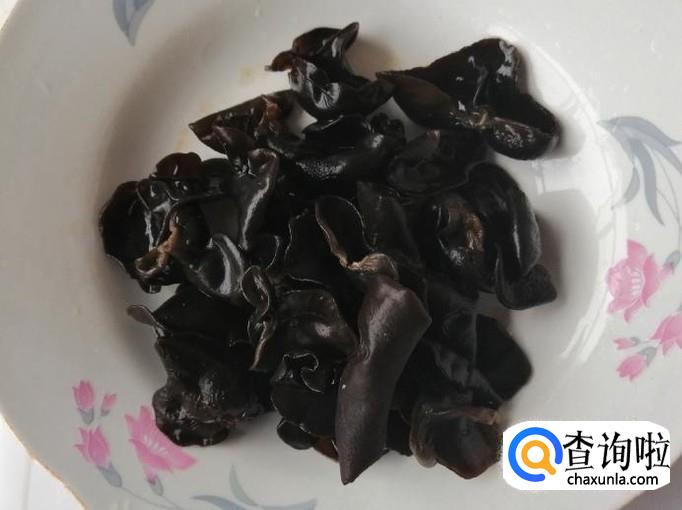 取适量干木耳,把木耳提前一两个小时用水泡发,把泡发好的木耳用清水洗净,然后用刀把木耳切末待用。