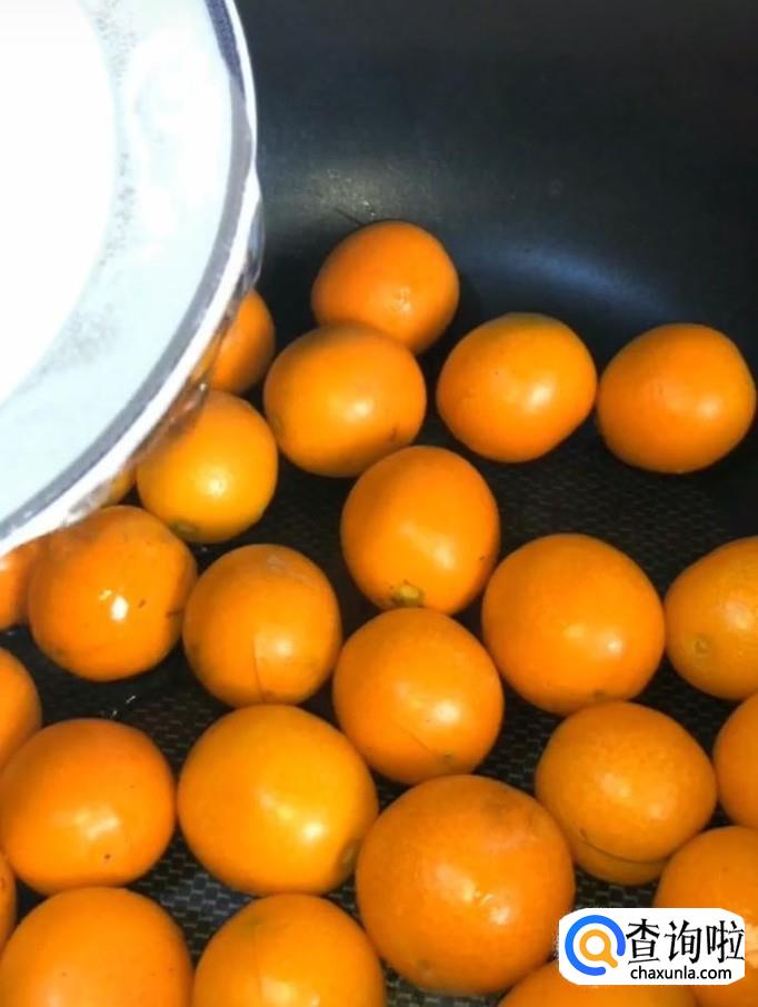 接着我们将处理好的金桔倒入锅中,再倒入适量的清水