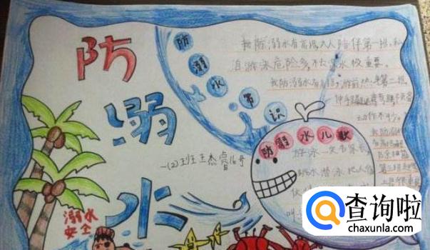 关于溺水,题目可以直接写成防溺水。画上一些有水花的画面,写一下我们青少年应该如何预防溺水,如一定得在大人的陪同下去游泳池,绝不私自下河洗澡。