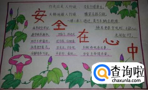 最后还有一个大范围的命题,题目可以写成安全在心中。把你想到相让大家注意的安全问题写上去,也可以编成歌谣让大家更有印象一些。