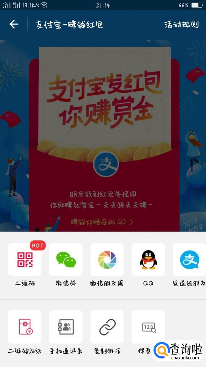 点击“立刻赚赏金”,就可以给好友分享领红包的链接,好有领取并且使用之后,你也会获得一份钱,这钱也就是推荐的赏金啦。