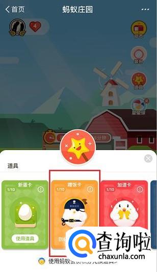在下方弹出的道具栏中,点击“蹭饭卡”道具。