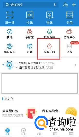 首先,打开手机支付宝APP,点击进入“蚂蚁庄园”。