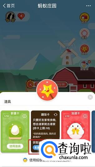 蚂蚁庄园是支付宝推出的一款网上公益活动,其中的“蹭饭卡”道具使用后,可以让自己的小鸡去指定的好友加蹭饭,那么如何才能获得“蹭饭卡”呢?下面小编就来给大家讲解一下“蹭饭卡”的获取途径都有哪些。