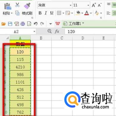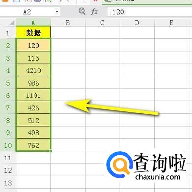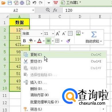 选中数据区域:A2:A10;鼠标再右击数据区域,弹出右键菜单。