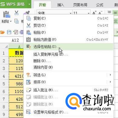 鼠标在A12单元格这里右击,弹出菜单,再点:选择性粘贴