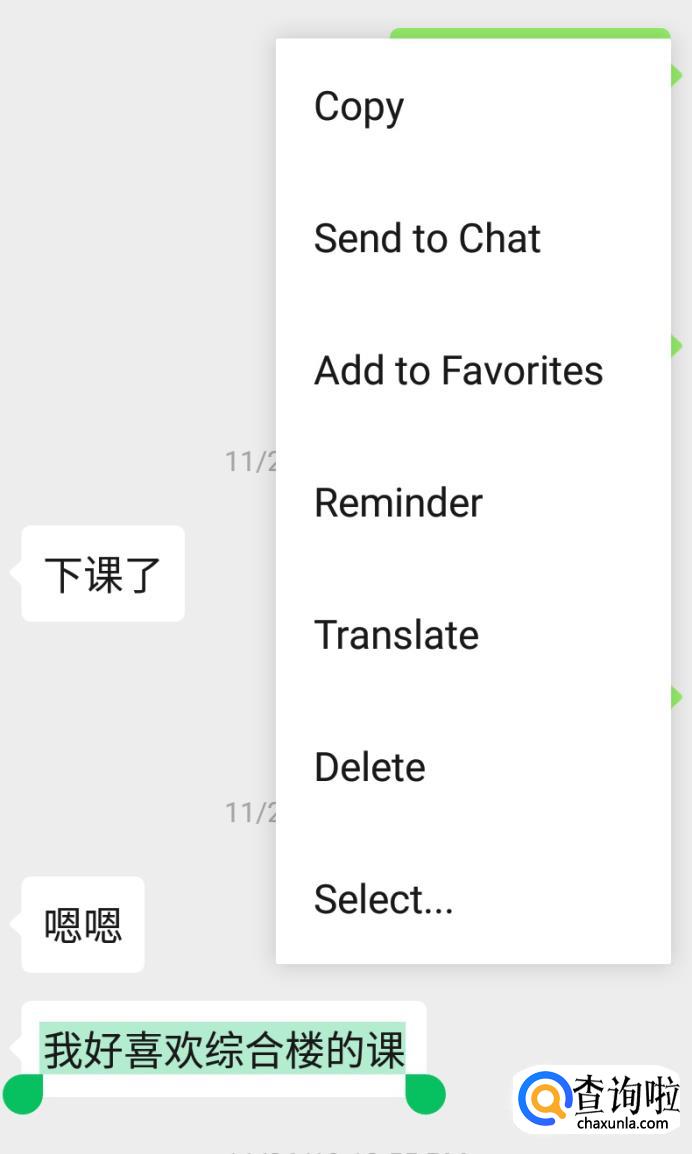 长按要翻译的那条信息。在弹出的窗口中,点击翻译