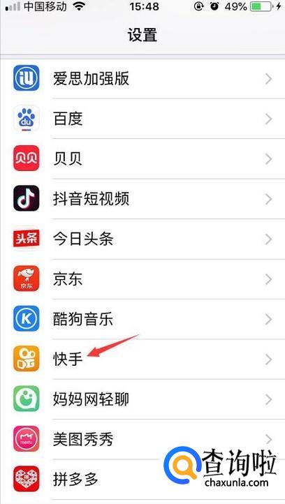 然后在设置功能里面一直往下拉,直到看到快手的应用。