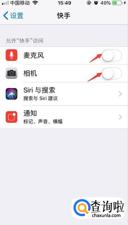 点击进去快手的应用然后打开相机和麦克风的权限。