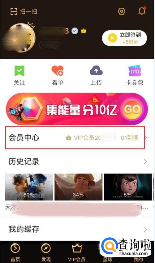 打开优酷App,点击右下角“我的”,找到“会员中心”。