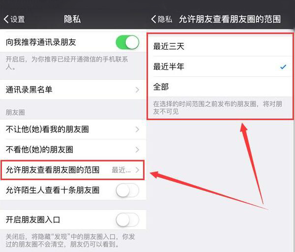 设置微信朋友圈权限只显示三天内容如下:
