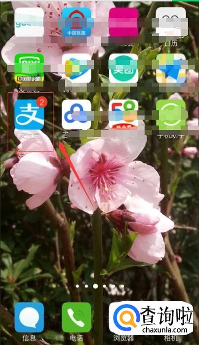 打开手机桌面,找到支付宝图标点击进去;(一般都是自动默认登录的)