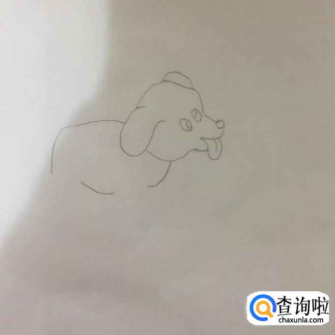 接着画出狗的身体轮廓,如下图所示。狗的身体最大高度建议参考狗的脑袋高度;狗的身体宽度建议参考1.5倍的脑袋宽度。