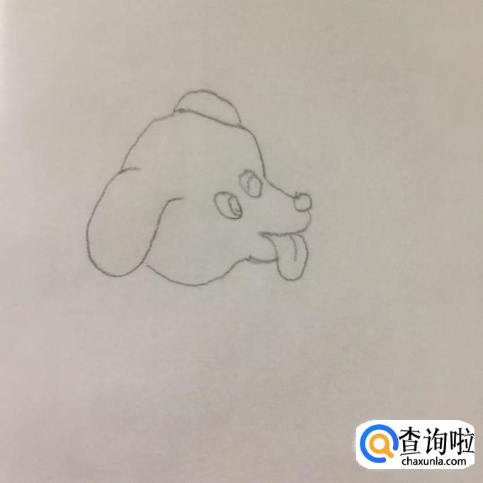 然后画出小狗的头部、耳朵和眼睛,如下图所示。头部最大高度建议参考两倍嘴巴高度。