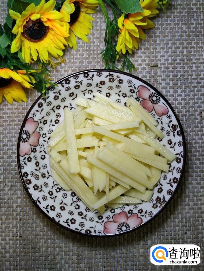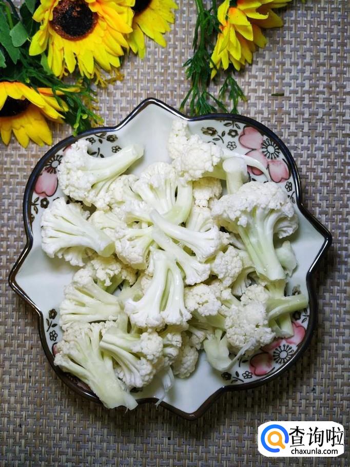 准备适量土豆洗净去皮后,切成条,再准备适量花菜,用手掰成小朵,洗净备用。