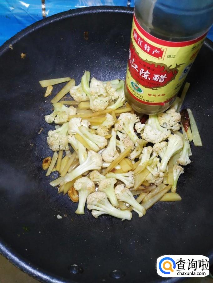 加入适量生抽,增亮色泽。炒至八成熟后,加入适量的陈醋提鲜。