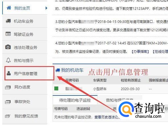接着进入主界面以后点击左侧的用户信息管理菜单,如下图所示