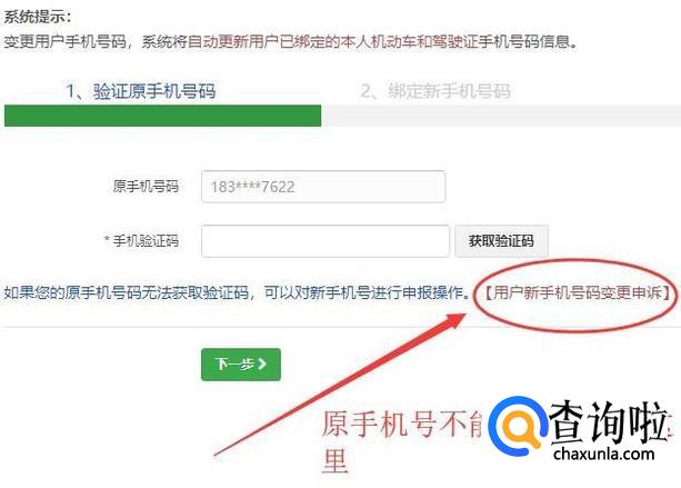 如果你的原手机号不能用了,接收不到验证码,那么你还可以点击用户新手机号码变更申诉,如下图所示