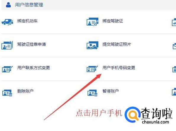 然后在右侧点击用户手机号码变更选项,如下图所示