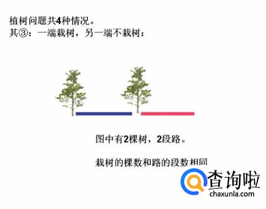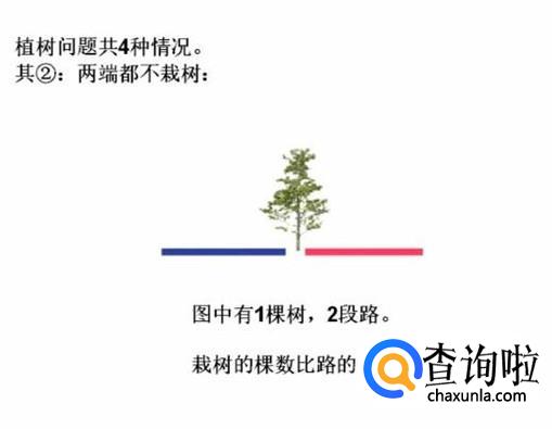 图中有1棵树,2段路,栽树的棵数比路的段数少1