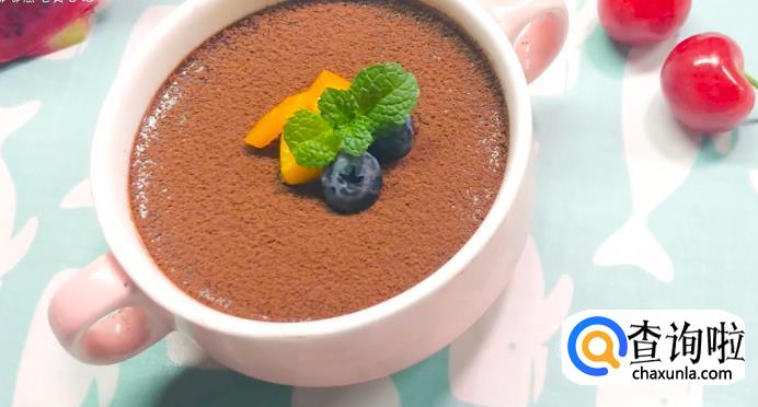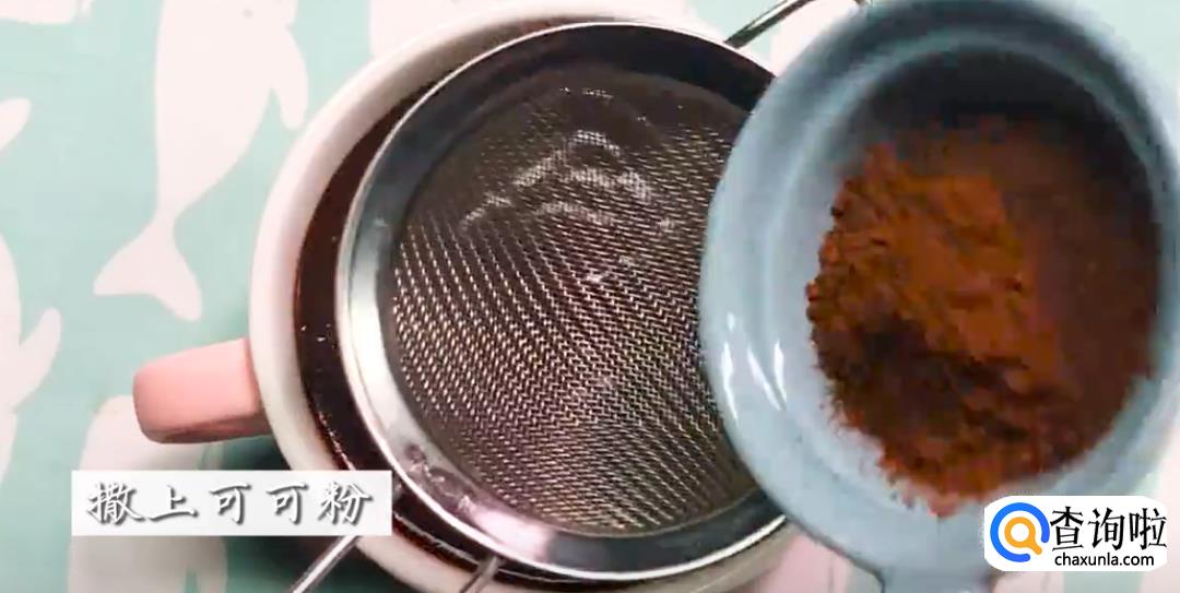 冷藏好之后将其取出,用过滤网在上面撒上一层可可粉。