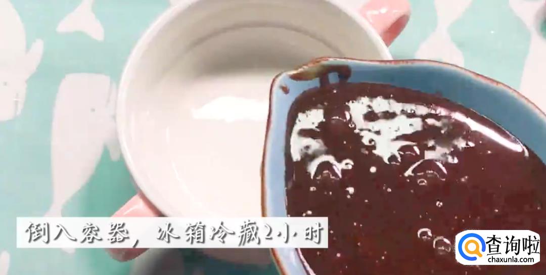 融化后,将其倒入容器中,放进冰箱的冷藏室冷藏2个小时。