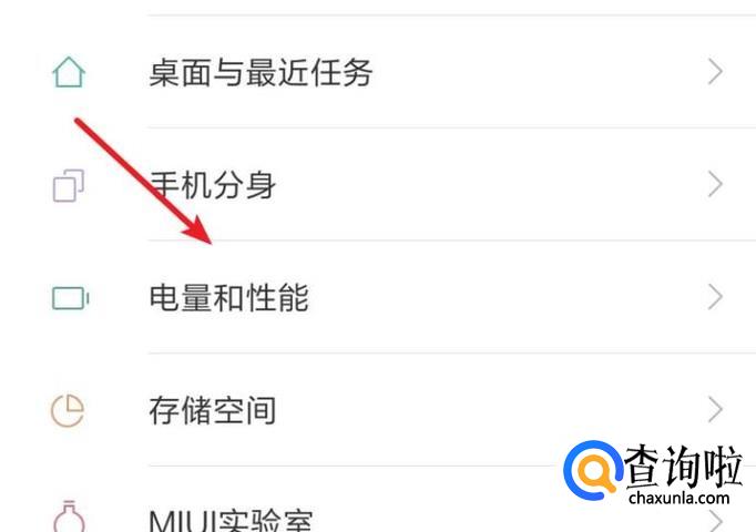打开手机的设置页面,点击上面的‘电量和性能’