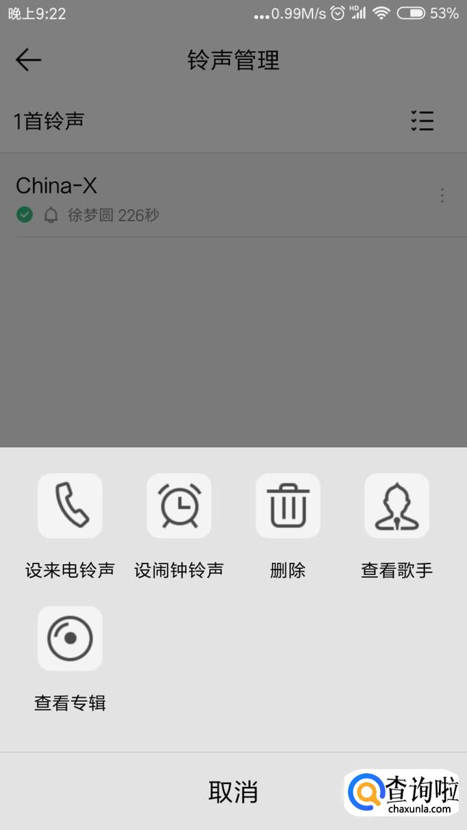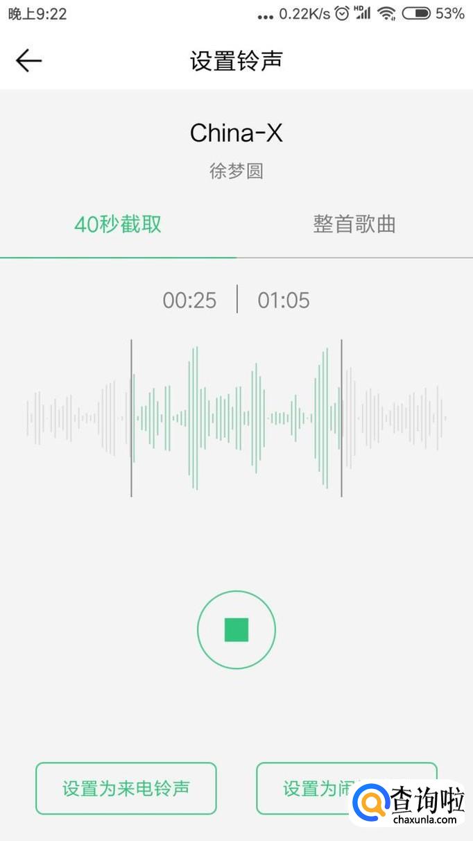 跳转到设置铃声的界面,可以根据需要设置为闹钟铃声或者来电铃声,也可以自定义截取铃声的长度