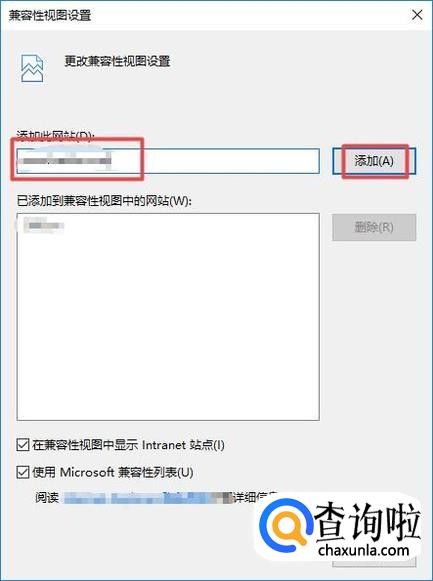 之后我们输入需要使用兼容模式才能打开的网页,然后我们点击添加;