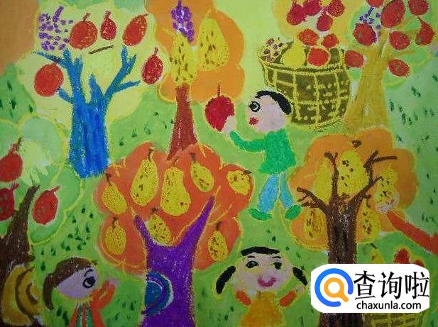 苹果、梨、枣、柿子、葡萄……许多的水果躺在箩筐里,高高兴兴唱着愉快的歌儿。