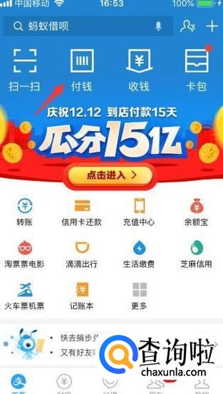 1、打开支付宝付款码;