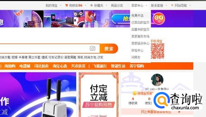 点击进入“卖家中心”,选择“免费开店”进入。