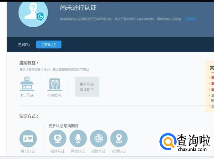 进入认证环节,点击立即认证,按步骤完成的有认证即可,完成后重新登录账号和密码即完成淘宝开店。