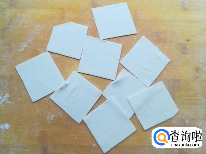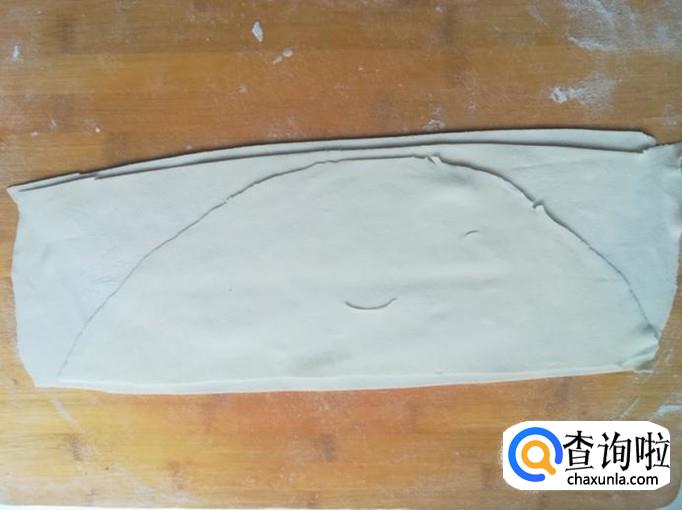 把饧好的面团放案板上,擀成很薄的面皮,这里越薄越好。