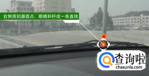 刹车:看右边雨刮器上的凸起点,与停车标志牌的杆,还有眼睛成三点一线时,就可以踩离合踩刹车停车。