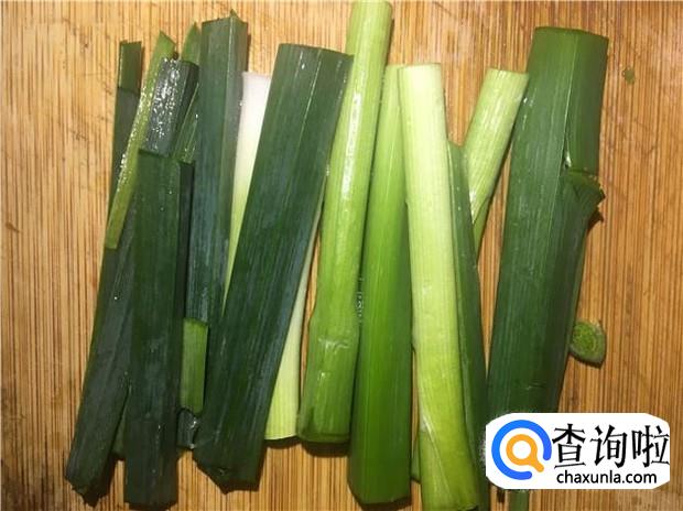 蒜苗清洗干净,切成长段,备用。