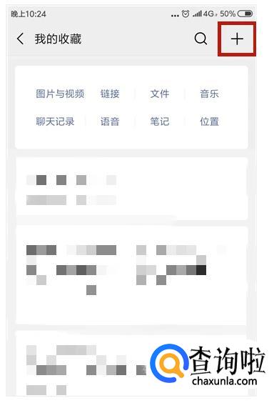 进入到收藏功能后点击右上角的【+】按钮打开添加收藏界面。