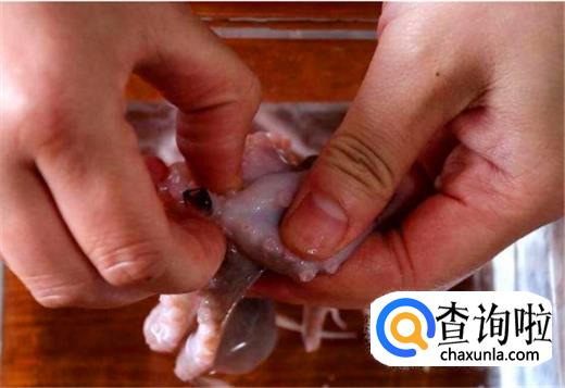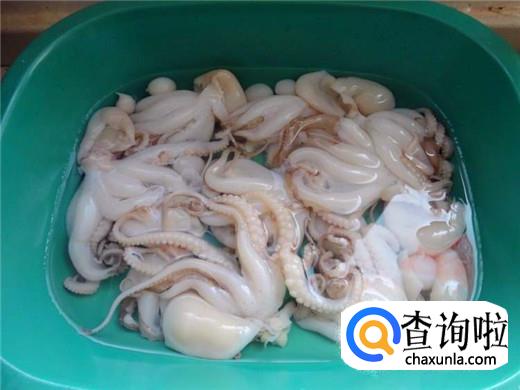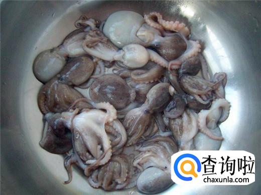 将八爪鱼的爪子分开,最里面的牙齿扣出来,然后将八爪鱼的眼睛撕下,再将八爪鱼的内脏也全部清洗,尤其是八爪鱼内脏里面的墨汁一定要全部清理干净。