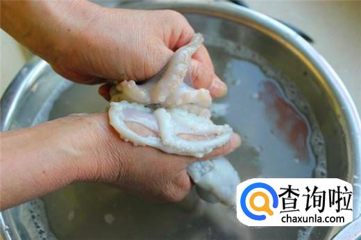 清洗八爪鱼的时候要先用清水冲洗一遍八爪鱼,然后倒入适量食盐与醋进行搓洗,去掉八爪鱼的眼睛、牙齿与内脏,去除八爪鱼黑外皮,然后再次用清水冲洗干净即可。