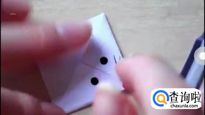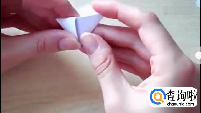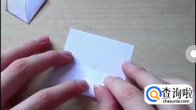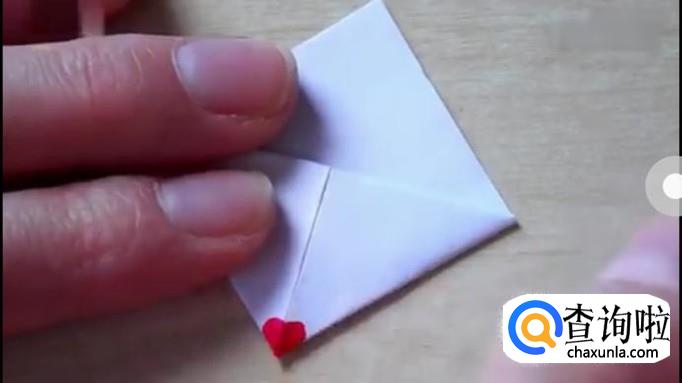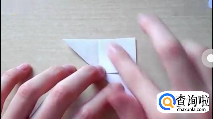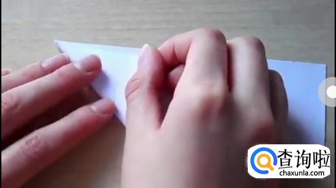 将三角形一边的上部分沿痕迹翻折下来,再将两边的角折叠嵌入,如图所示。