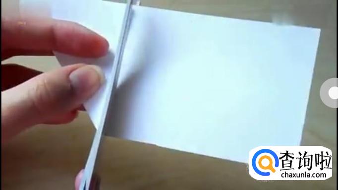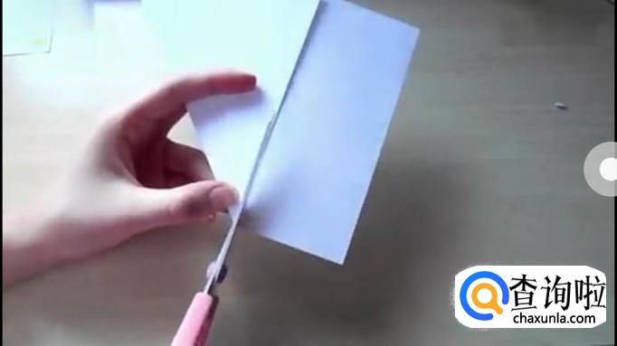 首先准备一张长方形的纸,沿长边折叠,然后拿出剪刀,剪下如图所示的部分。