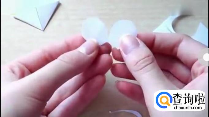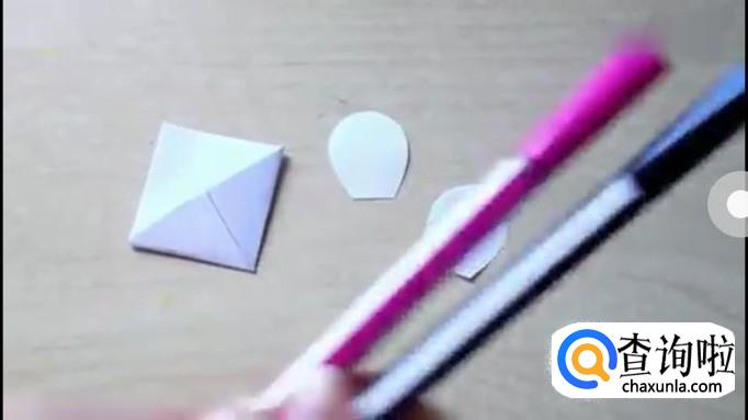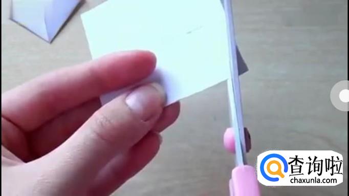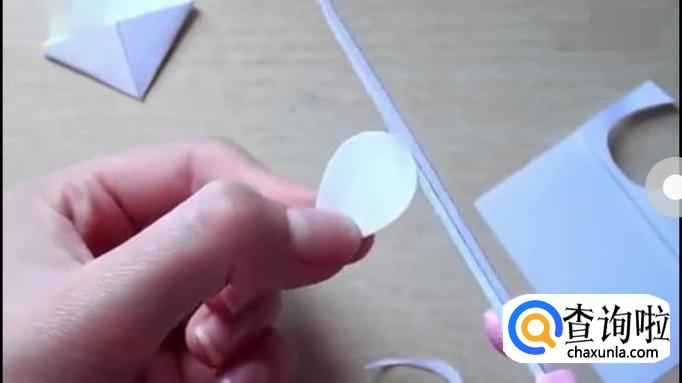 拿出之前剪下的小长方形,折叠,再用剪刀剪出椭圆形。