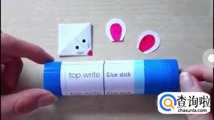 最后拿出胶棒,将小老鼠的耳朵和身体相粘,这样,一个可爱的心形小老鼠就完成了。