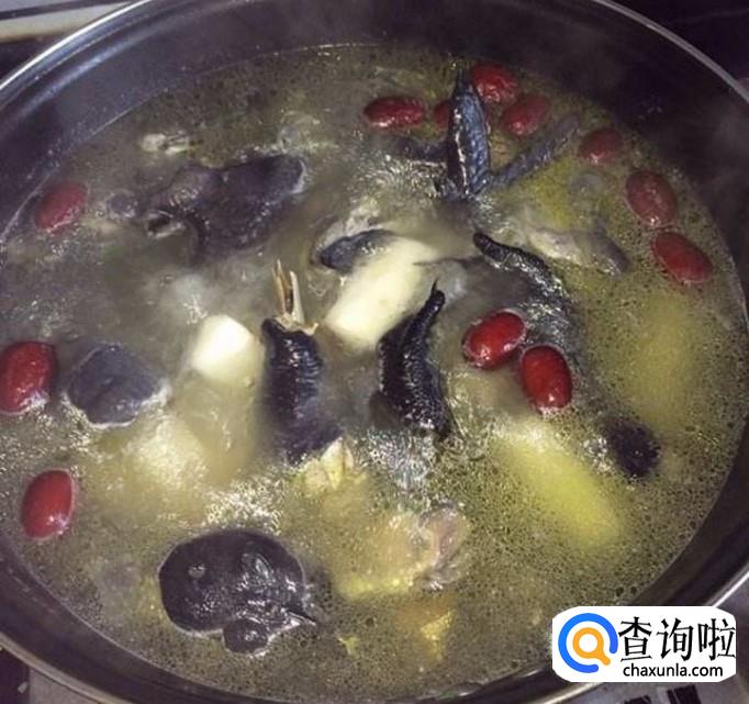 乌鸡肉块,姜,盐,料酒,红枣,香菇,山药。