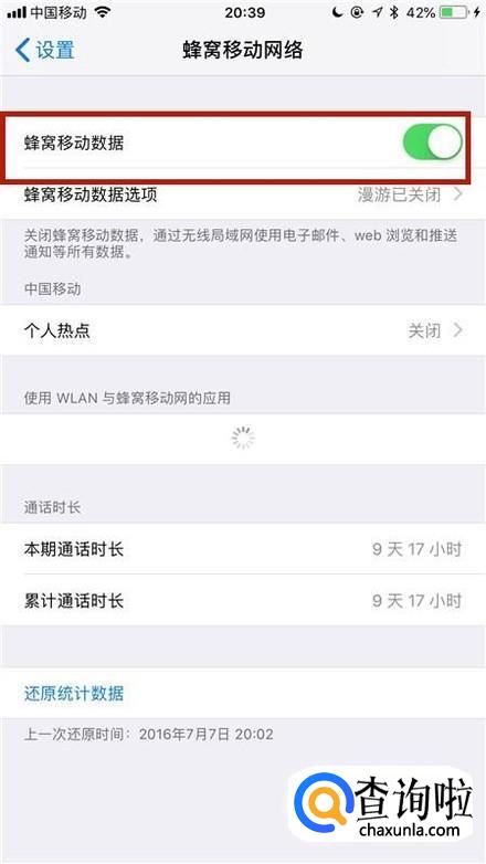 最后点击重新开始蜂窝移动数据开关就可以了。