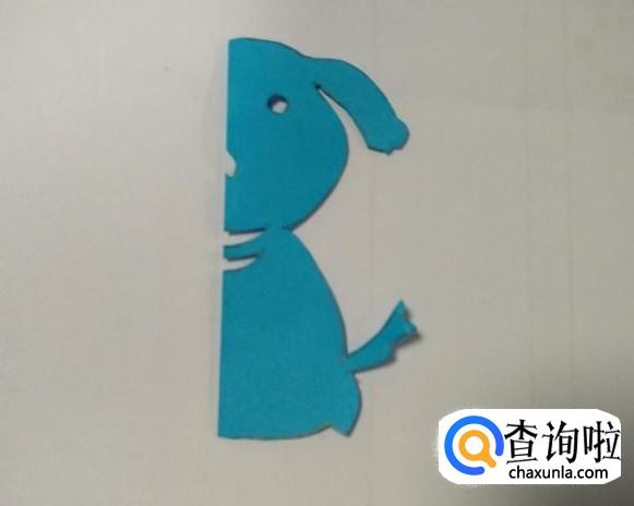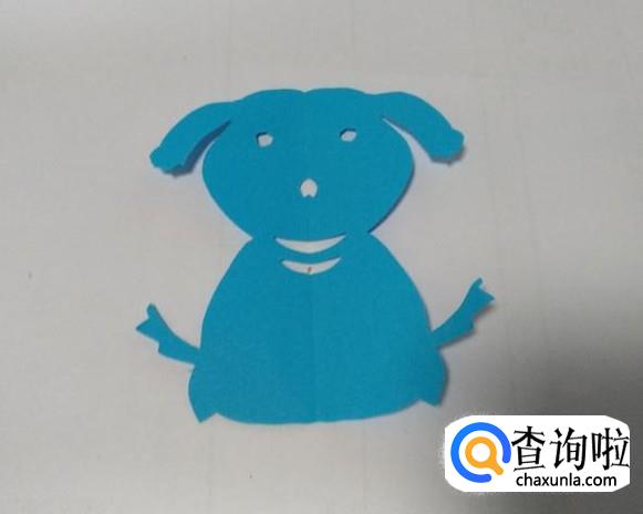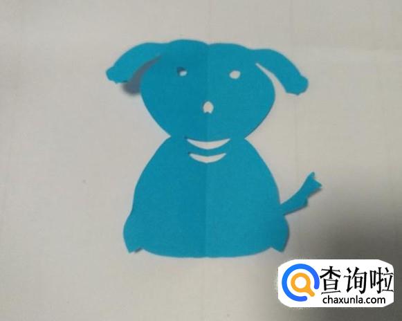 打开折纸,将左侧尾巴剪去,小狗就剪好了。