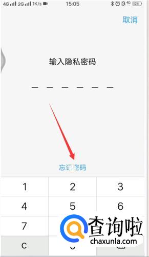 点击一下保密柜,会弹出密码输入界面,点击选择忘记密码。