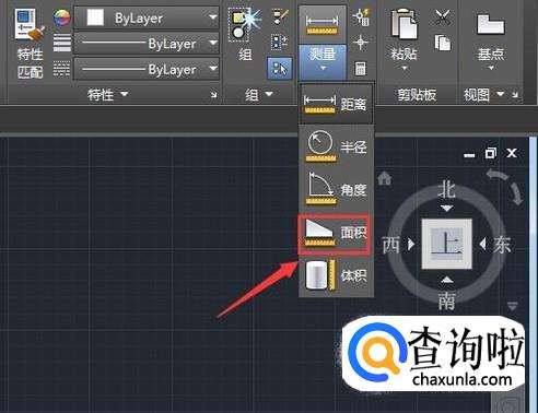 在CAD的使用工具里找到测量选项,点击该选项在其子级菜单哪里找到面积选项,如图所示: